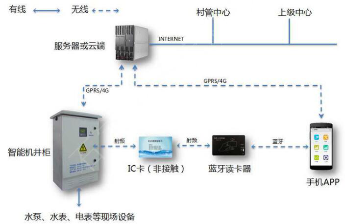 (2)每眼機井用水實現獨立控制,用戶可通過射頻卡進行機井的啟停、繳費等相關活動;根據每眼機井的用戶數量及灌溉面積,實現一機一卡、一機多卡和一卡多機靈活管理模式;管理單位在異常情況下可遠程閉井。